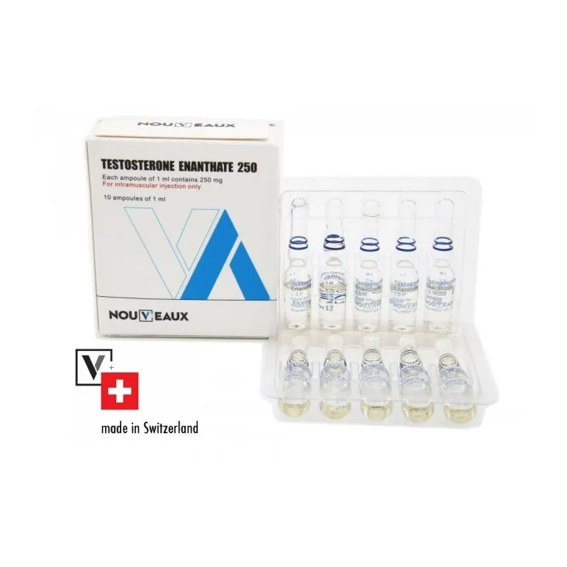El Enantato de Testosterona (Nouveaux Ltd) es una forma de testosterona de éster único y de acción prolongada, considerada el esteroide más básico y fundamental para todos los ciclos. Gracias a su éster de 7 carbonos, se libera lentamente, manteniendo niveles estables y elevados hasta por más de 3 semanas, con un pico de acción a las 24-48 horas.