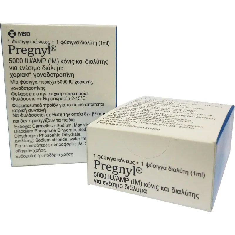 Pregnyl 5000 iu hcg consiste num pó liofilizado para injecção. O ingrediente activo [gonadotrofina coriónica humana (hCG)] que é obtido a partir da urina de mulheres grávidas, tem actividade de hormona luteinizante (LH).