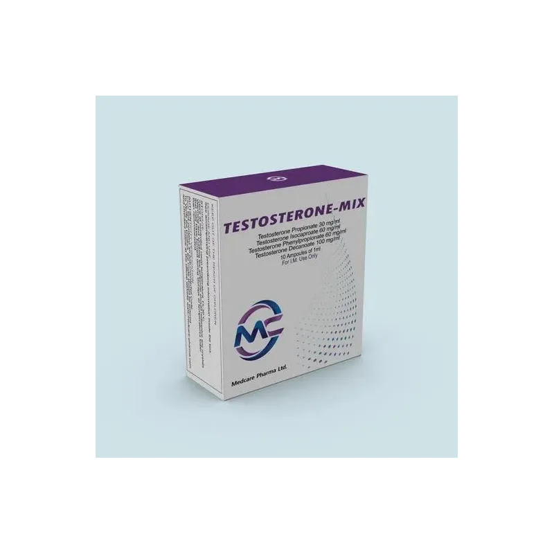 Testosterone Mix é uma solução à base de óleo de propionato de testosterona, fenilpropionato, isocaproato e decanoato para injeção IM que fornece testosterona nos casos em que é desejável uma titulação rápida e prolongada da dose e uma libertação lenta e rápida do fármaco. É utilizado para a terapia de substituição androgénica em condições associadas à deficiência ou ausência de testosterona endógena. A testosterona é responsável pelo desenvolvimento e crescimento dos órgãos sexuais masculinos e pelas caraterísticas sexuais secundárias após a adolescência. Os efeitos dos androgénios incluem, entre outros, a maturação do pénis, do escroto, da próstata, dos túbulos seminais, o aumento da laringe, o espessamento das cordas vocais, as alterações da massa muscular e da distribuição da gordura, bem como o desenvolvimento e a distribuição dos pêlos masculinos (faciais, púbicos, no peito, nas costas, axilares).